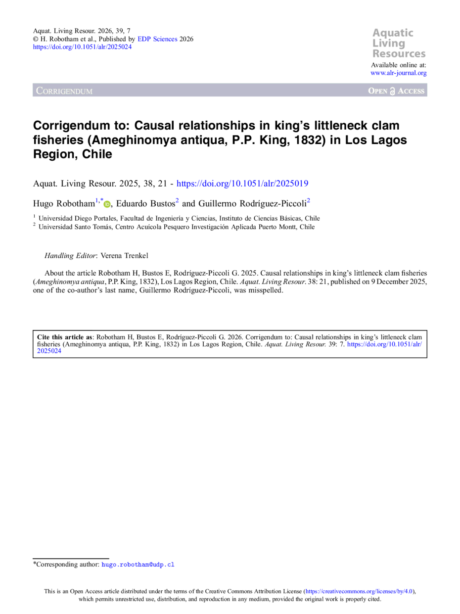Corrigendum to: Causal relationships in king’s littleneck clam fisheries (Ameghinomya antiqua, P.P. King, 1832) in Los Lagos Region, Chile